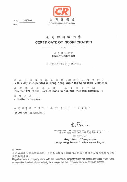 Certificate: ISO9001 AND SGS